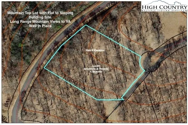 Fantastic building site in the upscale, gated community of Greystone at Phoenix. Enjoy amazing sunsets with views of Phoenix Mountain and the highest peaks of Virginia. The community offers underground electric and fiber optic internet with paved roads throughout. This lot already has a well in place and has previously been approved for a 3 bedroom septic. There are several homes under construction in the neighborhood and those builders would be glad to speak with you about starting your dream mountain build today. 2200 sq ft minimum to build. The towns of Jefferson and West Jefferson are a short 10 minute drive and within minutes you can be at any number of launch sites on the New River for a day of floating, kayaking, or fishing. The prestigious Jefferson Landing Country Club is just 7 minutes away for a round of golf and within 30-45 minutes you can be in the heart of the High Country which is well known for its winter sports, hiking, quaint small towns, and cool summer weather. Grab your piece of a mountain top with this 3500 ft elevation homesite today.