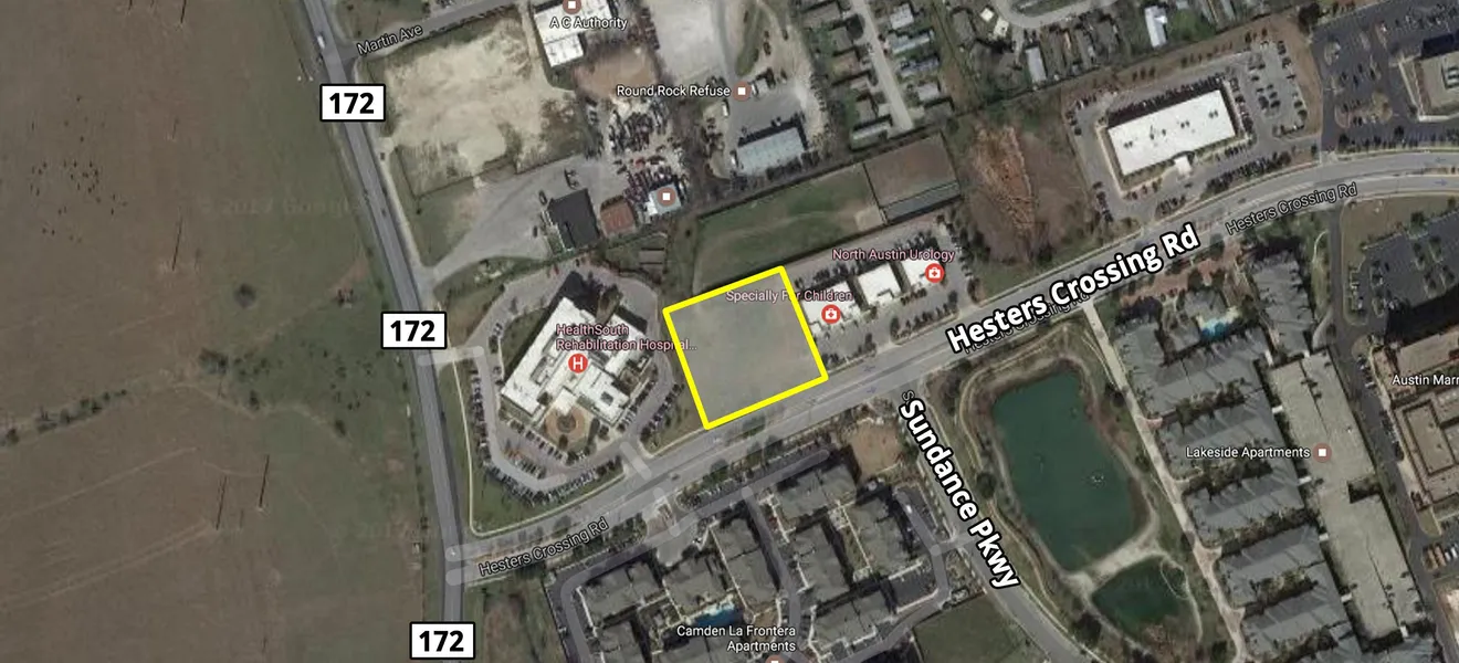 Research Parcel InformationLocated on Hesters Crossing Rd, just east of HealthSouth Rehabilitation Hospital in La Frontera