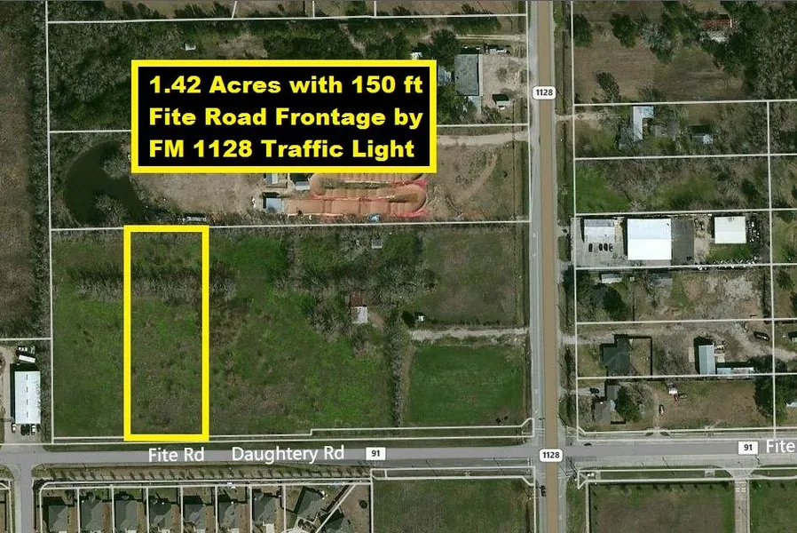 1.4268 acres w/152 ft Fite Rd Frontage by FM 1128 Traffic Light! City Utilities! Surrounded by homes, sports parks, churches & schools. Minutes from Police/Fire Stations, Cinema, Centennial Park, shopping & dining. Close to Hwy 288 & BW-8. City of Pearland Incentives! Can Be Commercial! Perfect for Gas Station/Convenience Store, Grocery Store, Office, Self Storage, Restaurant, Urgent Care, Senior Care Facility, Private School, Church, Day Care, etc. Additional Acreage Available: Up to 12.26 acres at Fite Rd & FM 1128 traffic light!