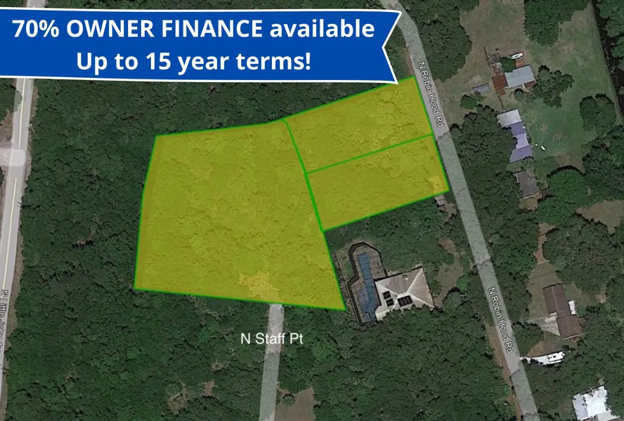 Research Parcel InformationDriving east on Hwy44, take a left onto S Little John Ave and a right onto N Robin Hood Rd. It is the 4th and 5th lots on your right (with the N Staff Pt lot directly behind).