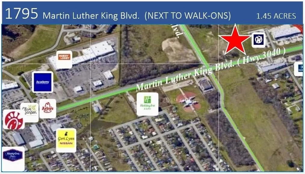 1795 Martin Luther King Blvd. - 1.45 ACRES - READY TO BUILD - ALL UTILITIES - Adjacent to Walk-On's Sports Bistreaux. This site presents an excellent opportunity for a high-profile location. Excellent visibility with 227' frontage on Martin Luther King Blvd. (LA. State Hwy. 3040) in Houma, La. General area includes National Retail, Restaurants, Hospitality and Multifamily. The retail corridor provides services and soft goods for a multi-parish area. OWNER FINANCING AVAILABLE
