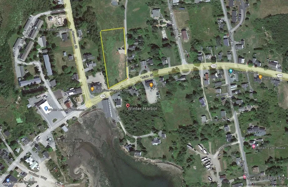 1.5 acre development in the center of Winter Harbor overlooking Henry Cove and the ocean. The location is perfect for a wide variety of development possibilities just 1 mile to Acadia's Schoodic peninsula and walking distance to shops and eateries along Main Street. This is the last vacant parcel of land in the center of Winter Harbor. Public water and sewer available.