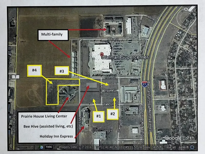 VACANT land (+/- 1.52 acres). 8 lots - each approx 80' x100' separated by an alley) Identified as Parcel #3 on the aerial photo. Zoned multi-family. Suitable for duplexes, townhouses, apartments, retirement housing, indoor public assembly. With rezoning, suitable for some commercial uses such as hotel/motel, restaurant, and others. Zoned Multi-Family but adjacent to General Commercial zoning. FOOTNOTES: This property is associated with 2 other properties combined on the same Hale County Appraisal District property record. Size is based on HCAD records. Property taxes are estimated from HCAD records. Contact David Kopp (Listing Agent) for more information Cell: 806.729.4878