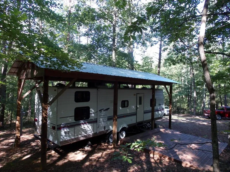 This 1.55 acres of land features a 33' camper, 200 amp electricity, 3 bedroom septic system and circle driveway. the land is mostly wooded and very private. This property is in Patrick County VA and is located between Ryan's Branch public boat ramp and Fairy Stone State Park. Great recreational property!
