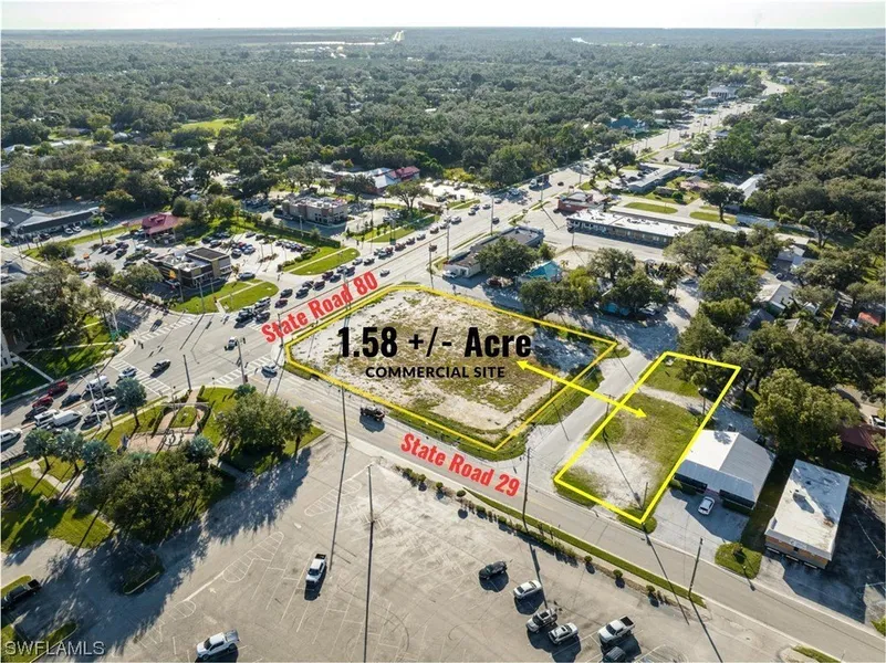 PRIME COMMERCIAL CORNER WITH TRAFFIC SIGNAL IN THE HEART OF LABELLE. Purchase this 1.58 +/- acre commercial site for your business or investment acquisition. Perfect location for a gas station, retail plaza, financial center, doctor's office and much more. Heavy traffic counts with non-stop traffic for east and west coast travelers from West Palm Beach/Maimi to Fort Myers/Cape Coral. Located in the middle of the city with McDonald's and Burger King across the street and the Hendry County Courthouse at the opposite corner. Vacate the cut-through road to maximize the size of this lot for endless opportunities. State Road 80 is a hurricane evacuation route and growth in LaBelle has skyrocketed int he last 10 years. Now is the time.