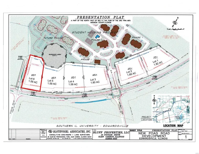 Breathtaking views of the American Bottoms, St. Louis & beyond. Perfect for retail or upscale office. Access to a 4-way lighted intersection. Presentation plat is flexible. Property must be platted prior to closing. Lot number 6 on presentation plat. Adjacent to Enclave West student housing development. Broker owned.