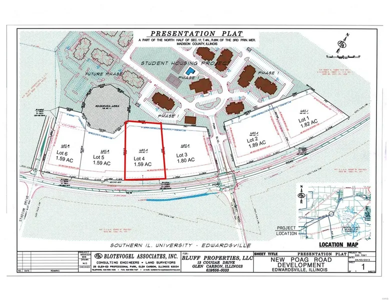 Breathtaking views of the American Bottoms, St. Louis & beyond. Perfect for retail or upscale office. Access to a 4-way lighted intersection. Presentation plat is flexible. Property must be platted prior to closing. Lot number 4 on presentation plat. Adjacent to Enclave West student housing development. Broker owned.
