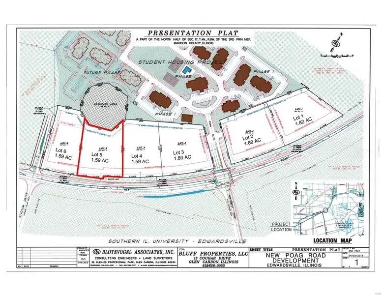Breathtaking views of the American Bottoms, St. Louis & beyond. Perfect for retail or upscale office. Access to a 4-way lighted intersection. Presentation plat is flexible. Property must be platted prior to closing. Lot number 5 on presentation plat. Adjacent to Enclave West student housing development. Broker owned.