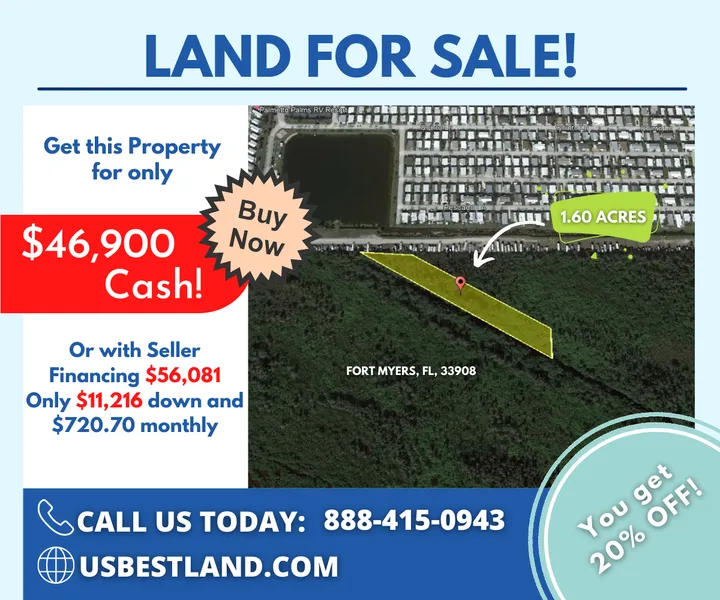 Grab the opportunity to take this great piece of land in Lee county ! With this fabulous 1.60 acre , you get experience being closeby to Sanibel Islands and Fort Myers Beach that makes it a perfect investment and is great for recreational use. An amazing Lot that is near for shopping, restaurants and even school. Plus, No HOA Fees on the property! For a limited time, get a 20% discount! Don't miss out on this fantastic offer! For additional information, call or text us today! Please give reference number 42838.