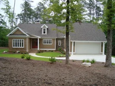 Gorgeous new waterfront home in upscale south side subdidvision. This one and a half story home with richly detailed moldings and lofty 10' ceilings on the main level has an open, flowing floor plan with designer kitchen, great room with fireplace, dining room, main floor master and guest room. Doors from the great room lead to a large covered porch lakeside and to a deck off the dining room. There are two guest bedrooms up with center bath and a large finished bonus room with half bath over the two car garage. This home has numerous special features - call for list. Low maintenance exterior is hardi plank, brick and stone. A two slip boathouse with bar/storage is at the waterfront.