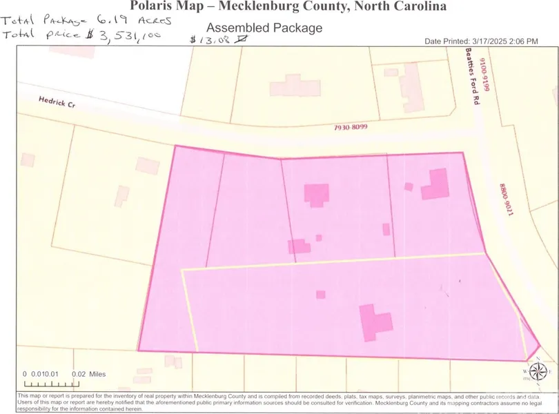 This property is in a rapidly growing area near the corner of Mt. Holly Huntersville Rd. and Beatties Ford Rd. Min's from I-485 and Northlake Mall. Other commercial properties near this property include Food Lion, CVS, Family Dollar, Daycare, BBQ house, Karate School & Mini Warehouses. Approx 300 yards from the greenway. Agent is related to seller. Road has been widened with turning lane and city water, sewer, & gas are all at the street. This will make a great commercial location but will need rezoning and there are other properties available to do a larger project. Call agent for details. House has no value. There are a lot of approved residential projects coming to this area. 2005 Small area plan for this property would like commercial/ retail, office. Corner lot. This can be combined with other listed property for a 6.19 ac rectangular package at $3,531,100. a great location for retail, medical, office, restaurant, etc.