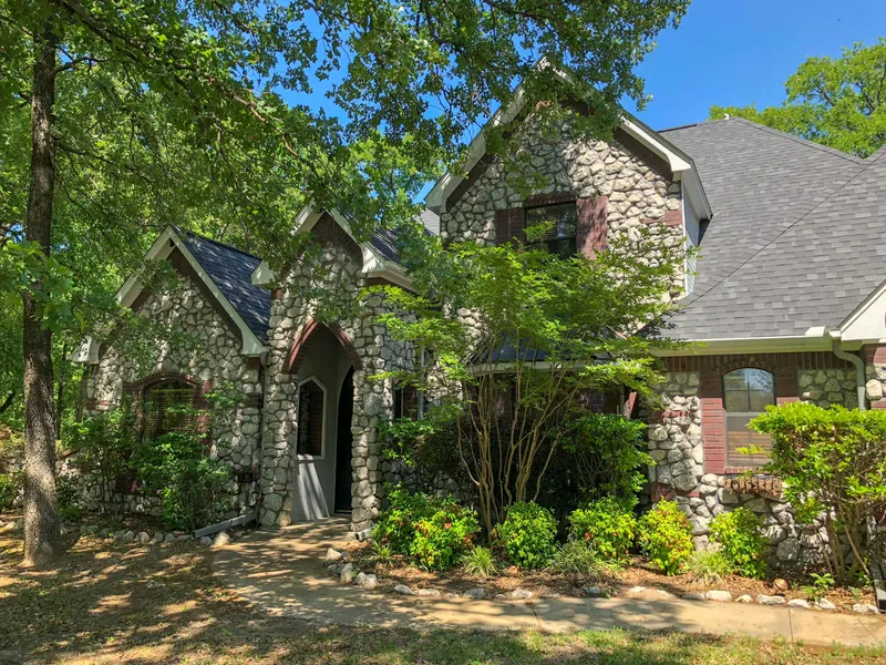 Wooded setting on private subdivision lot. Custom details abound in this spacious home. Study with built-ins, formal dining, wooded views from the family room with soaring ceilings and fireplace, den off the kitchen and breakfast room, craft or exercise room, split master suite with sitting area, luxurious bath with walk-in shower and jetted tub. Upstairs, three bedrooms and one bath. Downstairs, there is also a half-bath and ample storage. 2 car garage plus lawn equipment storage, circle drive, sprinkler system, fenced yard and dog run.