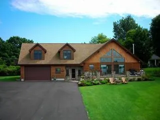 Wonderful Year-Round Home on the St. Lawrence River!!! They say a picture is worth a thousand words. Pictures and words cannot even come close to describing this wonderful year round home on the St. Lawrence River. Truly a work of art. Talk about curb appeal; this home features a paved drive, an appealing contemporary design, exquisite landscaping, an charming stone entry and a stone and stamped concrete deck perfect for entertaining or just relaxing. There are several spots in the yard and on the upper and lower decks to take in the amazing views of the St. Lawrence River. You will see sunsets and ships and the glimmer of the sun as it shines on the deep blue water of the St. Lawrence River. A tiled foyer is the perfect place to drop your beach shoes before entering the magnificent kitchen featuring granite counter tops, Wood Mode Cabinets and top of the line appliances including a warming drawer, a wine cooler and a whisper quiet dishwasher. The open floor plan with cathedral ceilings is sure to be a hit. On the first floor you will find two bedrooms and a full bath. Take special note of the sink, the attention to detail and whimsy is fantastic throughout this home. From the second floor loft you can sit back, relax and look at the ships as they travel up and down the St. Lawrence River. White cedar beams create the finishing touch! The master suite is located down the hall. Oh la la, wait until you see this! The floor plan is open, but the sellers have cleverly designed the closet space to act as natural barrier to divide the space to offer privacy yet preserve the open feel. The tile bath is a sight to behold, his and her sinks, a tile shower and an air powered whirlpool tub with a great river view. In the morning when you wake up open the door and step out to the upper deck. What a way to start the day. If you love quality yet want a home that feels cozy and comfortable this is it, all wrapped up into one neat package with over 200 of waterfront to sweeten the deal. Dont forget the oversized garage!