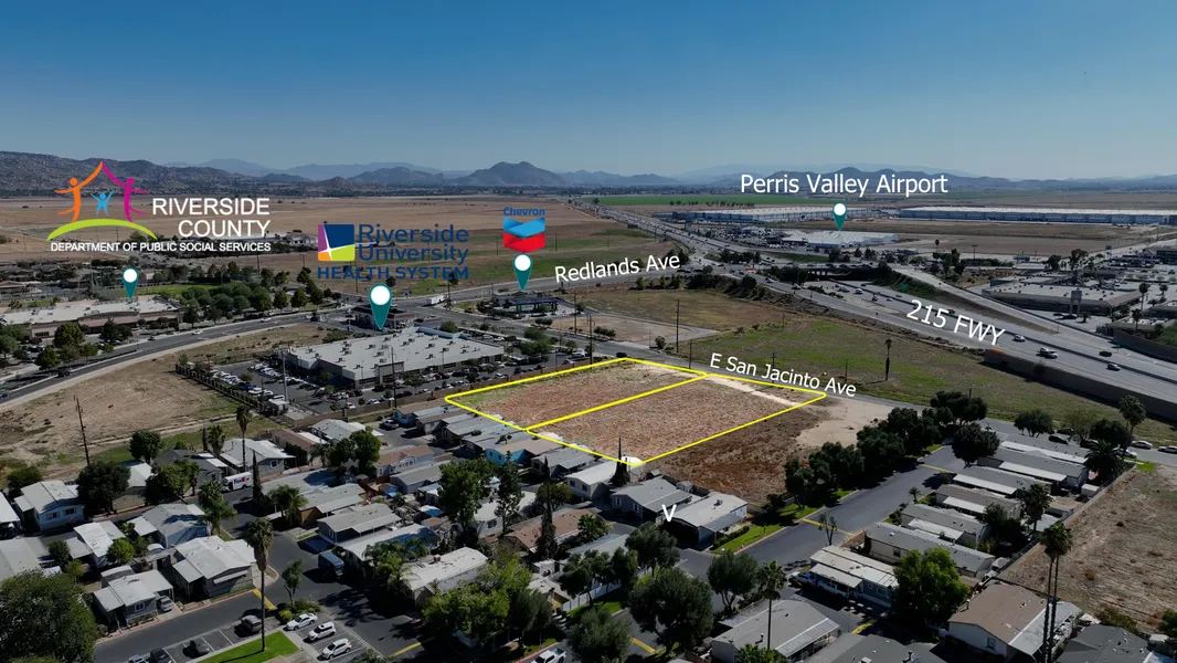 Research Parcel InformationTake I-215 N to Redlands Ave in Perris. Right on Redlands,Left on E San Jacinto, Lot is just past the Riverside University Health System Building on Right.