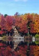 TRANQUIL LAKEFRONT CHALET ON PRIVATE NORTHERN WAYNE COUNTY LAKE features 3 bedroom, 2.5 bath cedar contemporary, oak hardwood floors, double sided fieldstone fireplace, approx. 70 ft. lake frontage. Property has 2 garages, second well, electric service and driveway with 28 x52 concrete pad for a second building.