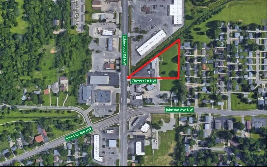 Prime development land in northwest Cedar Rapids in high visibility area off Edgewood Road NW and Johnson Avenue NW, where traffic counts exceed 24k vehicles per day. Site is located in the center of a commercial district featuring a mixture of retail and services businesses including restaurants/bars. Easy access to 1st Avenue, Bus 151, I-380, Hwy 30.
