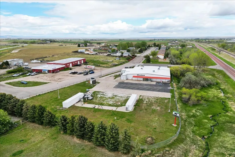 Commercial Opportunity in Wheatland Wyoming. 1.9 acres fully fenced with chain link security fence. Two buildings with over 15,000 square feet of space. Located less than a half mile from I-25 on North Wheatland Highway with excellent highway frontage. City water and sewer.