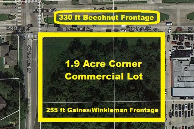 New Price! Highly Visible Commercial Corner Property in High Traffic Intersection of Beechnut St & Winkleman/Gaines Rd just off Hwy 6 & Westpark Tollway. Property has 350 feet of Beechnut Street frontage and 235 feet of Gaines Road frontage. Beechnut is a 4-lane divided street with new traffic signal. Property consists of 2 parcels totaling 1.9 acres and is in MUD District. Great Investment Opportunity & perfect for Gas Station, Convenience Store, Restaurant, Retail Center, etc. Texaco Station is locate across Beechnut & San Miguel Subdivision is located across Gaines. Near George Bush Park and Grand Parkway. Owner Will Consider Financing!