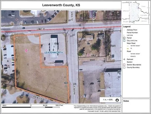 "L" shaped piece of vacant commercial land located behind Wood Oil on the Southwest corner of Limit & Hughes. Land can be subdivided, priced at $5 per square foot, square footage determined by survey.
