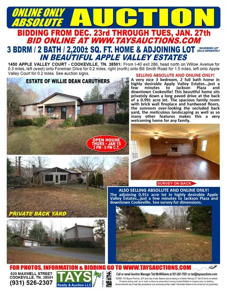 Terms: 10% Buyer's Premium. 20% down day of sale. Balance due at closing on or before