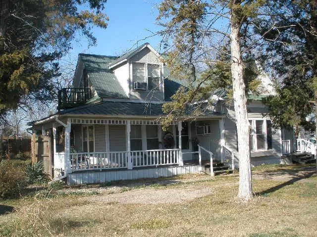 Cute 3 bedroom home iwth L-shaped front porch, remodeled kitchen, wood flooring, fresh paint, metal roof. Extra room upstairs could be playroom or extra bedroom. Covered walkway between house and garage.