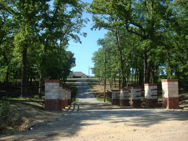 The shower in the master bath is 6' x 6' with dual shower heads. There are double sinks and a whirlpool tub. There are 2 guest (or children's) bedrooms and a guest bath. There are a total of 3 bedrooms (plus the upstairs playroom) and 3 baths in the home. The 10 acres are 90% wooded. It is quiet, it is peaceful and it is beautiful. Shown by appointment only ... call Glenda at 580-889-1326 to schedule.