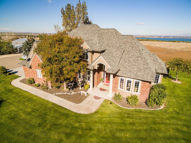 Executive home in a quiet country setting with beautiful views of Lake Lowell. The residence boasts a generous 5181 square feet, 6 bedrooms, 4 bathrooms and an attached 3 car garage. The luxurious features throughout give it a warm and inviting atmosphere. These details include the architectural brick exterior, rich hardwood floors, high ceilings and large windows that allow natural light to flood in. Those that enjoy cooking will love the gourmet kitchen which highlights custom cabinets with a built-in wine rack, granite counter tops, an island, stainless steel appliances and a flat top range. The relaxing master bedroom suite on the main floor is one of the most impressive spaces in the home. It features a walk-in closet, an attached private office with French doors and master bathroom with a jetted tub. There are multiple spaces for entertaining in either the living room, formal dining room, formal living room or the lower level recreational bonus room. The bonus room has a full wet bar, a fireplace with a rock hearth and a large space perfect for a pool table. This space also opens out onto the covered back patio.