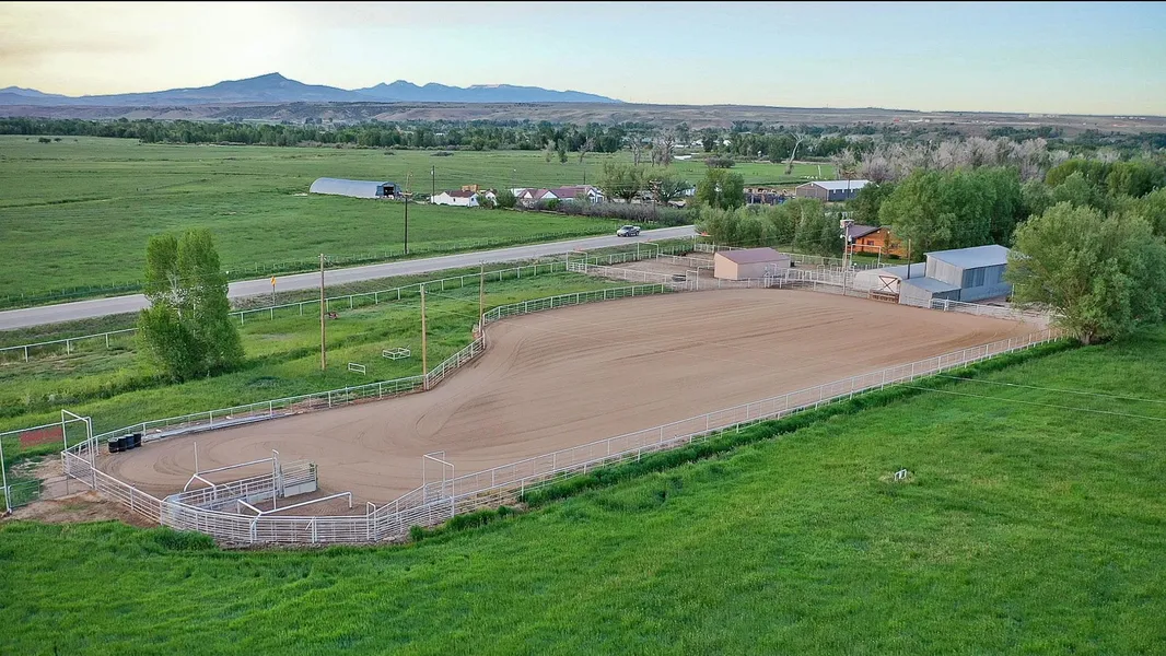 Highlighting the improvements is a full-size roping arena with roping chute, boxes, stripping chute and runback alley and additional corrals all which are of pipe construction.