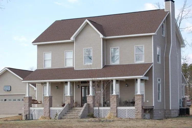 Beautiful country estate just one mile from Hill Creek Marina. This fine custom home sits high on a hillside overlooking Greers Ferry Lake, river valleys and Ozark Mountains. Beautifully appointed with hardwood flooring, exposed beams, upgraded lighting & fixtures, soothing colors, & wood fireplace. Light & airy with lots of windows, large bedrooms, office, jetted tub in master BA, oversized garage with workshop, 5 BR & 3.5 BA, DSL internet connection, driveway to be relocated