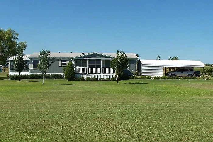 10 acres located on CR 487, 2 miles north of De Leon just off HWY 16: The home is a very nice 2000 model Palm Harbor 3 bedroom, 2 bath mfg. home with 1456 sq. ft. living area, plus an air conditioned sunroom with an additional 280 sq ft! The home has central air/heat, an island kitchen, has all new carpet and vinyl floors, a large garden tub in the master bath and more. Outside there is the 2 car carport with enclosed storage, a patio, irrigation capable water well, underground yard sprinkler, 2 storage buildings - both with attached carports, a new cement inground storm cellar, and a stocked Catfish pond with fishing dock! (see the pictures). There is so much to tell about this place, like the diesel farm tractor and equipment that is included, all the Texas Ash, Austrees and Bradford Pear trees, the garden area, the kitchen appliances that are all included, the new pump in the well, the water softener, the Coastal Bermuda pasture and more. You will just have to see this one to believe it!