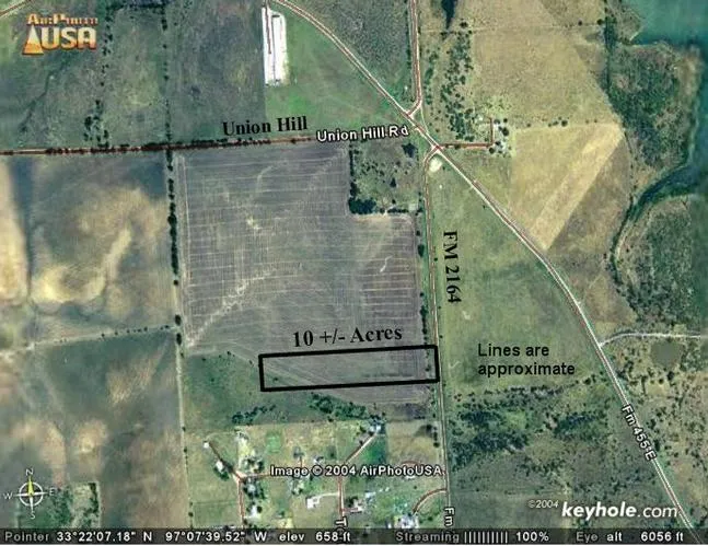 Research Parcel InformationFrom Sanger, take FM 455 east, FM 455 intersects with Union Hill and FM 2164, property is at that corner.