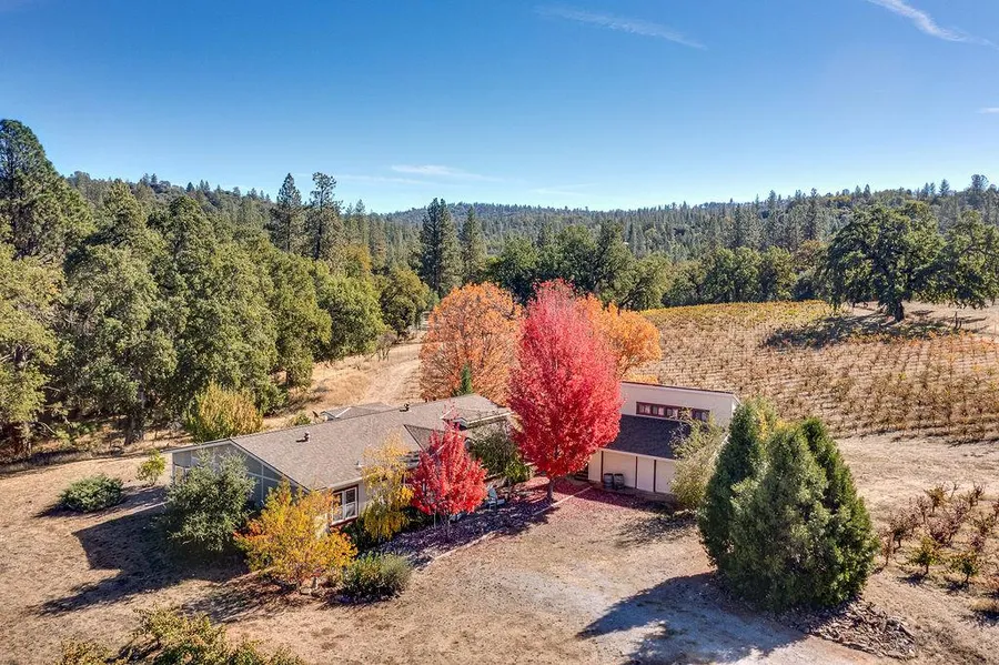 situated nicely near the center of the property in the middle of the vineyard. A detached two car garage with an outside entrance to a loft that could be