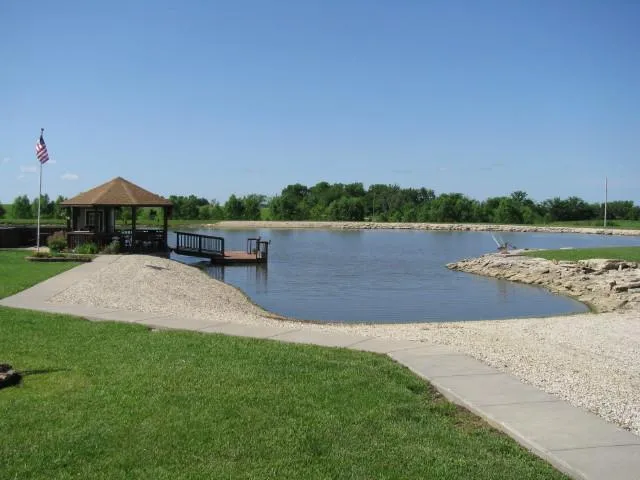Your own private 2 plus acre lake right outside your home, rocked shore line, set up with dock and gazebo. Home is a 3 bedroom, 2 full bath, earth contact home on 10 very nice acres. Large Master bedroom with office or exercise room just off the master bedroom with lots of windows. Roof and furnace replaced just one year ago. Attached single garage and carport. Also a 2 car detached garage, a 40x60 shop/storage building with partial concrete floor, and 4 overhead doors. Just 1/4 mile from hard surface road.