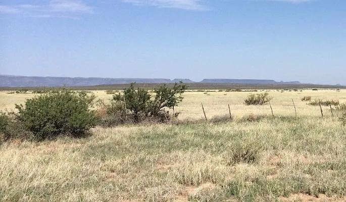 This is a rugged area of unspoiled natural beauty. Terrain tends to be high desert hills, wide valleys, mountains with lots of rimrock and cliff faces, and fields. Vegetation is grasses, scrub brush, live oak, cacti, juniper, and pinion. Animals in the area are mule deer, quail, fox, coyote, weasel, bobcat, doves, and the occasional aoudad, elk and oryx.