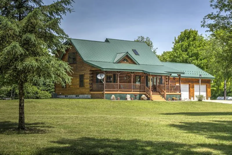 This full log home is meticulously cared for. D logs offer flat interior surfaces for ease of cleaning and decoration. The roughly hewn exposed interior beams are also square cut for ease of display. The interior walls are a combination of wood and drywall which allows for a visual break from all the wood of the exterior walls, this home has three bedrooms and two full baths. The main floor great room features a natural stone fireplace fueled by gas, and flanked by a comfortable sitting area, dining area and open kitchen. An archway leads into a sun room with an additional fireplace and lots of windows for wildlife viewing. The lower level has a large pool table or game room, secured gun room, exercise area and large sunny laundry. The sizable covered front porch will add months to your outdoor living seasons. Unlike some Upper Penninsula structures this home was built with all the regulations, inspections and permits required for proper and sound construction. The gated, secure entrance leads onto a winding 1/4 mile deep gravel driveway secluding the home from it's easy access to HWY 2. A short drive takes you to a rarely used secluded, Lake Michigan Public Beach with miles of State shoreline. There is an attached two car garage plus a separate garage/workshop which offers interior storage, covered exterior storage as well as an insulated workshop complete with heat and water. An "off site monitored" Security System will afford peace of mind for this property as a residence or a weekend get a way. There is an adjoining 27 acres with a finished guest/carretakers cottage available separartley which will not be sold until the Log Home is sold prior. This adjacent property offers well maintained trails that will accomodate a large ATV. Great hunting on property.