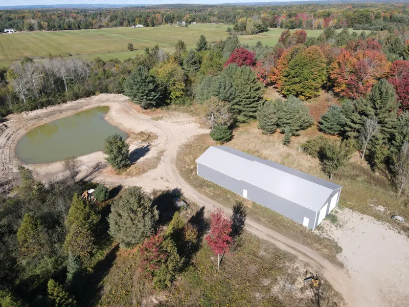 Ogemaw County Barndominium on 10 ac!! There are 35 total acres available for $305,000, if you are interested in more land. Located in Lupton not far from Shady Shores, George Lake and Rifle Lake and just down the road from Rifle River Rec Area. This 40'x112' barn features 16' side walls, two overhead doors with 60' of concrete. The remaining 52' that faces the newly dug pond, is a proposed living area that features scissor trusses and has a subfloor built about 4' off the ground leaving a crawlspace area to run all wiring and mechanicals. This is an amazing space that is ready for your personal home design.