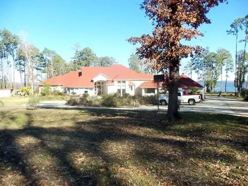 Most unique 6500 s.f. home (under roof per seller,)with the best of everything! Round living room surrounded by huge windows; 14' ceilings in most of the house spacious master bedroom; enormous master bath w/whirlpool tub w/mood lights and towel warmers; walk in shower; 3 steps up to exercise room that overlooks gorgeous pool w/outdoor kitchen and big patio; formal dining room; huge kitchen, cabinets everywhere;granite countertops galore, beautiful family room; 5 bedrooms & 6 baths; the BEST that money can buy! Stunning waterfront, Austin stone patio all on almost 11 acres of fenced in property and fine entrance gate leading to home on concrete drive. Concrete everywhere, nice big garage with stoarge area; pole barn; ag extension on taxes; home and 10 acres under no restrictions. Just won't find this kind of waterfront property on Toledo Bend Lake. Qualified buyers only please.