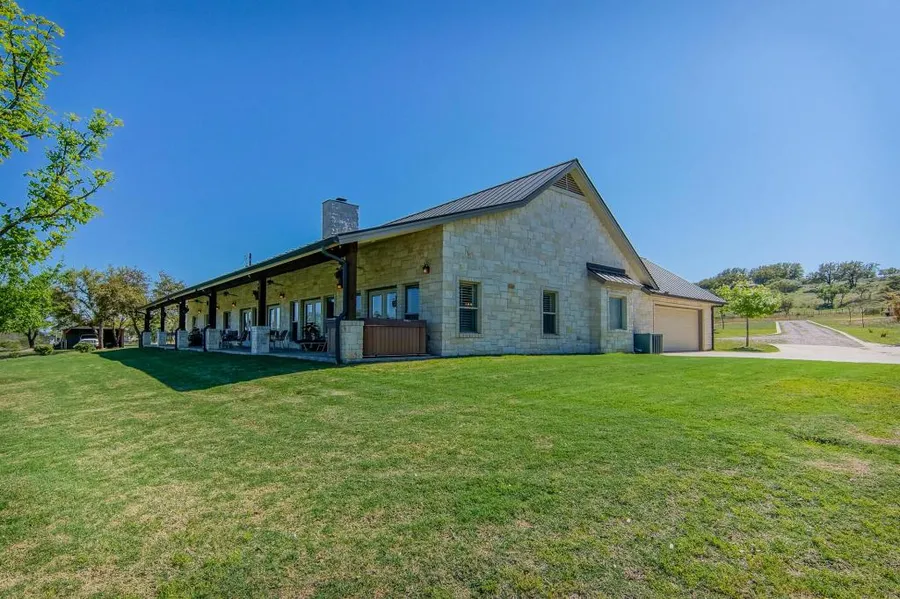 Hill Country Elegance within 15 minutes of Austin city limits; 1 story; 10 acres with creek; Great floorplan; Master suite with 2 master baths and 3 three bedrooms each with their own private bathroom. Gorgeous interior features gourmet kitchen with granite countertops opens to great room; formal dining and breakfast area and plantation shutters. Exterior has covered porch with spa; gazebo; barn/workshop; 2 wells with 15,000 gal rainwater tank and 5,000 gal tank for irrigation. No HOA! Bring your horses!