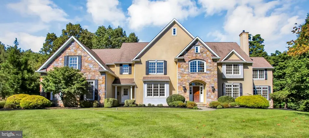 Welcome Home to this stunning custom built home located in desirable Devonshires Estates in Blue Bell. The open floorplan boasts an oversized 3-car garage, 5 generously sized bedrooms and 4.5 baths with a host of special features & upgrades. Situated on wooded 2 acres, the well-maintained grounds include an expansive flagstone patio accessed from the home and detached private covered patio with a fireplace and putting green. A flagstone walkway leads inside to the grand 2-story entry foyer that showcases a turned staircase. The formal dining room to the left is accented with a tray ceiling and wainscoting; to the right is the intimate formal living room that includes one of three fireplaces. The large gourmet kitchen is appointed with upgraded stainless steel appliances, double oven (one convection), two-tiered island that seats four, granite countertop, 42" cabinets, and walk in Butler's pantry. Directly off the kitchen is the spacious family room that is adorned with case beams, built-in custom cabinetry, and a fireplace. The office/sunroom displays floor to ceiling windows throughout that offer an abundance of natural light. Also on the first level, is a multi-purpose mudroom with a playroom, bench storage, closet, one of two powder rooms and a second entrance door. The home's 2nd level can be accessed by two sets of stairs. The luxurious master suite showcases the bedroom with tray ceiling that's adjacent to the sophisticated sitting room that includes a window seat, coffee bar, mini-fridge, and the 3rd fireplace. Two professionally organized closets and dressing area lead to the upgraded master bath that includes Jacuzzi spa tub, dual shower heads and separate water closet. Four sizeable bedrooms - one with en-suite bath, one plumbed for a full bath, and another hall bath complete the 2nd level. The fabulous daylight basement boasts a 1000+ bottle wine room accessed through French doors; a 6th bedroom with a full bath, multi-recreational rooms, media room, and plenty of recessed lighting and storage space. Other special features: central vac, 2 hot water heaters (one tankless), security system, back-up generator, and exterior irrigation system. The sought-after location of Blue Bell offers shopping, dining, parks, easy access to major thoroughfares and public transportation. Highly ranked Wissahickon School District. A 1-Year Home Warranty is included. Please Note: the price of this magnificent homes reflects compensation for stucco remediation.