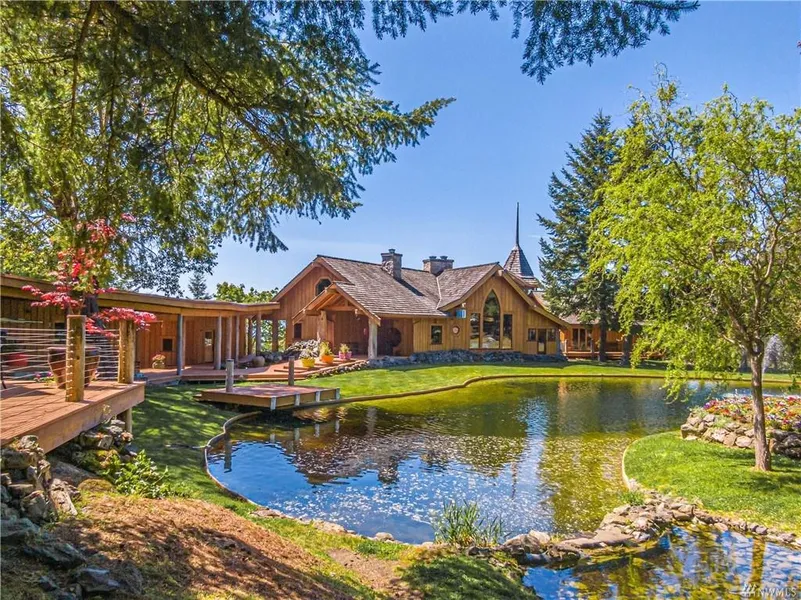 A brilliant vantage point with views over Straights and Mountains. Gated 11+ acre estate embraces the coastal beauty of the west side with an unequaled standard of construction and architectural excellence. A majestic 3 bedroom timber framed home with theater and outbuildings that include a world class recording studio and exquisite 4 bedroom guest house enhanced by the allure of a perfectly designed pond with island and footbridge. San Juan Sanctuary.