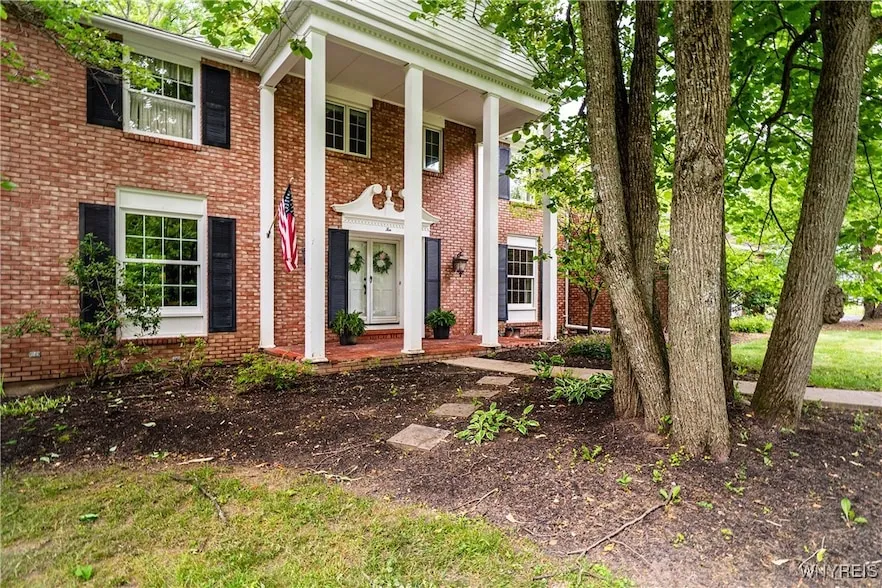 Welcome Home to 10 Knob Hill, located in the sought-after Eagle Heights neighborhood on a rare 1-acre park-like parcel. Easy access entering the circular driveway with its convenient side-load garage. This beautiful center entrance Colonial greets you with a gorgeous entryway that provides access to all areas of the home. First floor boasts gleaming Birch and Hickory hardwood floors. Let's begin with the Formal Dining Room, which features elegant dental molding along the top and built in buffet offering storage for all your serving pieces. Moving on, the Family Room offers a cozy atmosphere with a brick gas fireplace, perfect for cooler evenings, and is complemented by built-in bookshelves on either side. Entertaining will be seamless with the convenience of a built-in wet bar. Connected to this space, a few steps down will lead you to the Living Room, distinguished by its crown molding and a second fireplace, this one wood-burning. Here again, you'll find a full wall of integrated cabinets and bookcases. As you step into The Kitchen, you'll immediately recognize it as a Chef's delight. The thoughtfully designed center island includes a cooktop and conveniently doubles as a breakfast bar. Brand new double oven will complement the appliances that will remain with the home. The granite countertops offer both beauty and ample workspace, complemented by an abundance of cabinet storage. Take a moment to pause by the kitchen windows and enjoy the view of the backyard, complete with a charming gazebo, a cozy fire pit, and the natural privacy provided by the tree-lined lot. The spacious concrete patio and sidewalk are lined with perennials making gardening a breeze every year. Adding to all the amenities, you will be delighted with the finished basement. The second floor has 4 very generous bedrooms with one being a primary en-suite. Top this all off with a first floor laundry adding to all the conveniences. We're waiting for you to fall in love with this beautiful home with so much to offer. There is an electric pet fence, sellers will be leaving two collars as well.