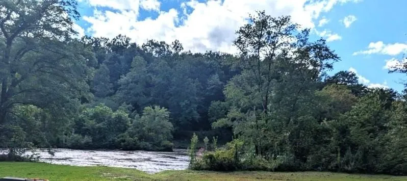This beautifully furnished 2-bedroom, 2-bath home provides comfortable living on the Tuckasegee River. With modern finishes, thoughtful design, and numerous amenities, it's perfect for both relaxing getaways and full-time residence. The included outbuilding offers additional storage and is 240 sq ft. The property's proximity to local attractions and recreational opportunities makes it an outstanding choice for anyone seeking riverfront living. Close to WCU, Sylva, Dillsboro and Cherokee. Plenty of space for outdoor activities: play cornhole, relax by the firepit, or play in the water, fish or go tubing across the street to a strip of land that goes with this property or in the HOA common area. Currently used as a vacation rental. The kitchen features granite countertops, white custom kitchen cabinets, and an island with sink and dishwasher. Wood ceiling and wood and stone accent wall around the cozy fireplace. Wooden interior doors throughout the home. Primary bedroom includes an ensuite bathroom, double closets, and direct access to a covered porch with river views. Tiled shower extending to the ceiling with a clerestory window for natural light. Second bedroom is spacious, offeri