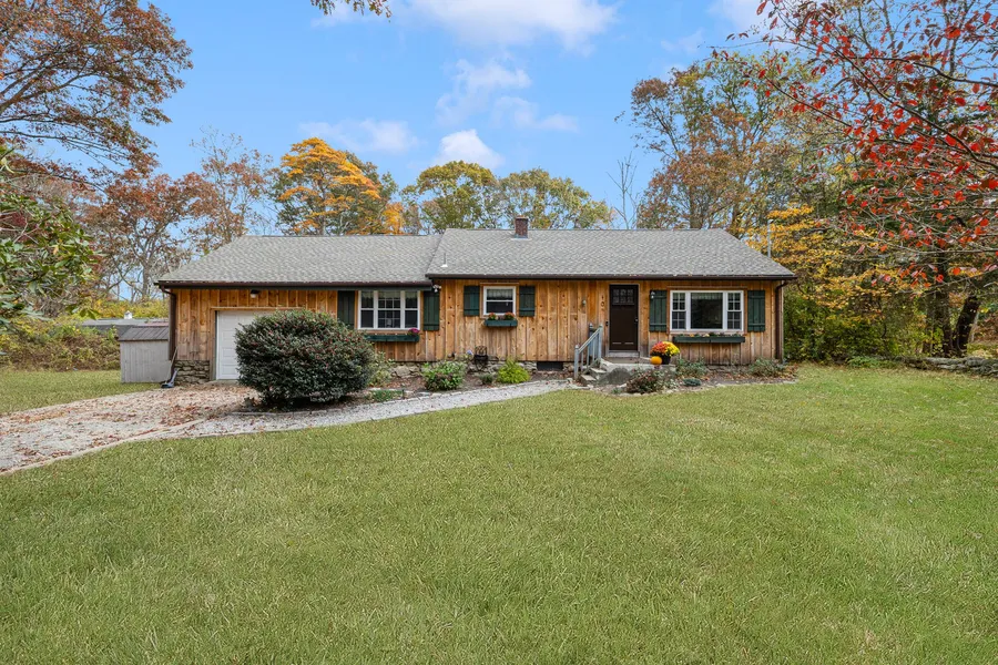 One level living!!!!! Discover the perfect blend of rustic charm and modern convenience in this beautifully updated ranch home, nestled on 1.7 private acres. The exterior boasts great curb appeal with wood board and batten siding, a welcoming front entrance, and lush greenery surrounding the property. Step inside to find gleaming hardwood flooring flowing throughout the living area. The heart of the home is the stone-faced fireplace, creating a cozy focal point for the spacious living room. The adjacent kitchen is perfect for culinary enthusiasts, with ample cabinetry and counter space. The primary bedroom is beautifully done, complete with an updated en-suite bathroom for added privacy. Two additional bedrooms provide plenty of space for family or guests. Recent upgrades include a new 3-bedroom septic system, a new roof, new well system, and updated electric, ensuring the home is ready for its new owners!! One-level living makes this home incredibly accessible, with the added convenience of a 1-car attached garage. The private yard offers endless possibilities for outdoor entertaining or relaxation.