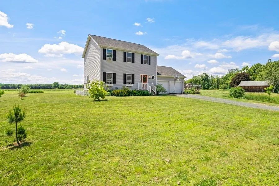 Offer Deadline: Tuesday 6/21, 5PM. Peacefully situated, this 3 bedroom 2.5 bathroom home of 1680 square feet with an attached 2 car garage rest on a corner lot of 1.38 acres in South Deerfield. An open concept living, dining and kitchen area with an attached laundry area and a 1/2 bath make up the first floor. On the second floor you will find the primary bedroom with an en suite bath and additional 2 bedrooms and another bathroom. Enjoy the views of the farmland from almost every window. The expansive backyard features an inclosed garden area with an attached chicken coop and a fire pit that backs up to protected farmland. Enjoy eating pears, plums, raspberries, blueberries, strawberries, rhubarb and asparagus all harvested from your own backyard. Youll appreciate the short drive to the best destinations of Deerfield and easy access to I91. Move in ready.
