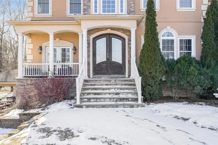 Welcome to 10 Todd Hill Road, a custom-built colonial estate nestled on 5.52 private acres in Poughkeepsie, NY. Constructed in 2008, this expansive 4,116-square-foot residence boasts four generously sized bedrooms, each with access to a full bathroom, and additional versatile rooms suitable for a fifth bedroom, office, or guest suite. Upon entering through the dual 8-foot mahogany front doors, you're greeted by marble tile with imported inlays and hardwood floors, reflecting the home's meticulous craftsmanship. The kitchen features custom cabinetry, a commercial-grade appliance package, and a walk-in pantry, catering to culinary enthusiasts The lower level offers nearly 2,000 additional square feet, including a finished recreation room, exercise area, and a wine cellar. Three sets of Anderson doors lead out to an expansive paver patio equipped with a BBQ area, ideal for outdoor entertaining. Located just one mile from the Taconic State Parkway and minutes from Arlington Schools and Route 55, this property provides both tranquility and convenience. Experience luxury living in this thoughtfully designed home that seamlessly blends elegance with modern amenities.