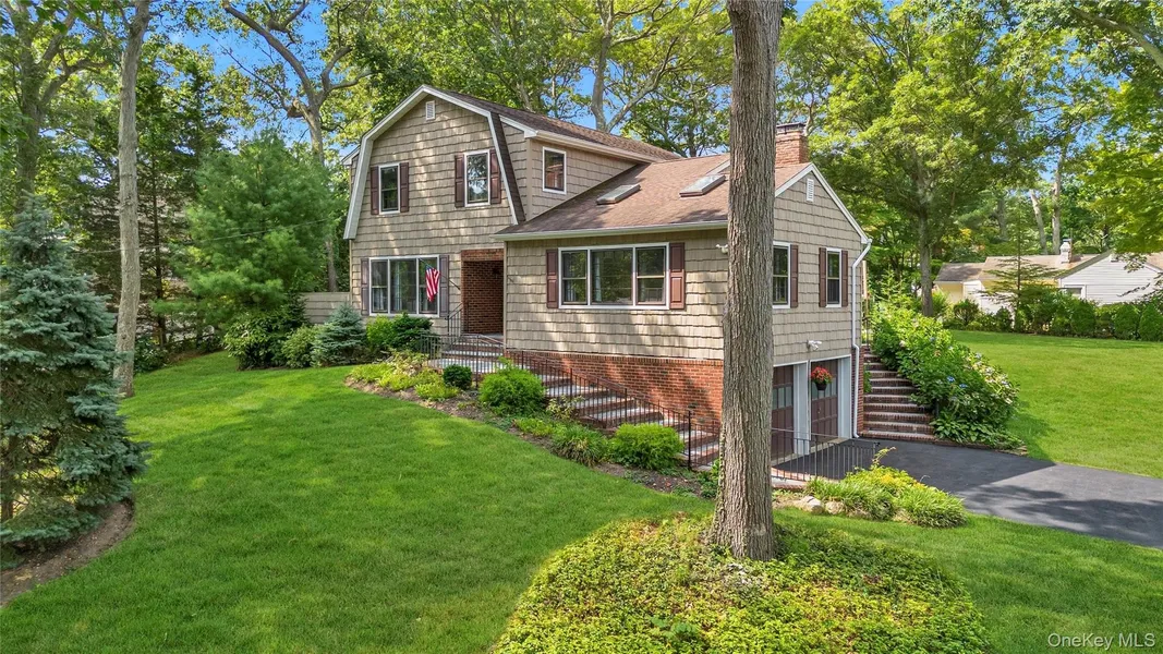 Charming Colonial set on a picturesque .75-acre lot in the heart of the historic hamlet of Fort Salonga. This structurally sound home offers the perfect blend of classic charm, modern comfort, and an unbeatable location. With 4 spacious bedrooms and 2.5 bathrooms, it is thoughtfully designed for both everyday living and entertaining. At the heart of the home is an expansive great room located above the two-car attached garage, featuring a soaring vaulted ceiling with skylights, a cozy wood-burning fireplace, and gleaming hardwood floors. This light-filled space is ideal for gatherings with friends and family year-round. The open-concept kitchen flows seamlessly into the great room and offers direct access to a bluestone patio—perfect for al fresco dining and relaxing evenings overlooking the serene rear grounds. The property boasts impressive curb appeal, with a gently rolling front lawn and a flat, private backyard offering ample space for a future in-ground pool or sports court. Recent updates include a 7-year-old roof, skylights, gutters, and siding, along with central air conditioning and a new boiler installed in 2020. Ideally located for commuters, just minutes from the Sunken Meadow Parkway and close to all the highlights of North Shore living: