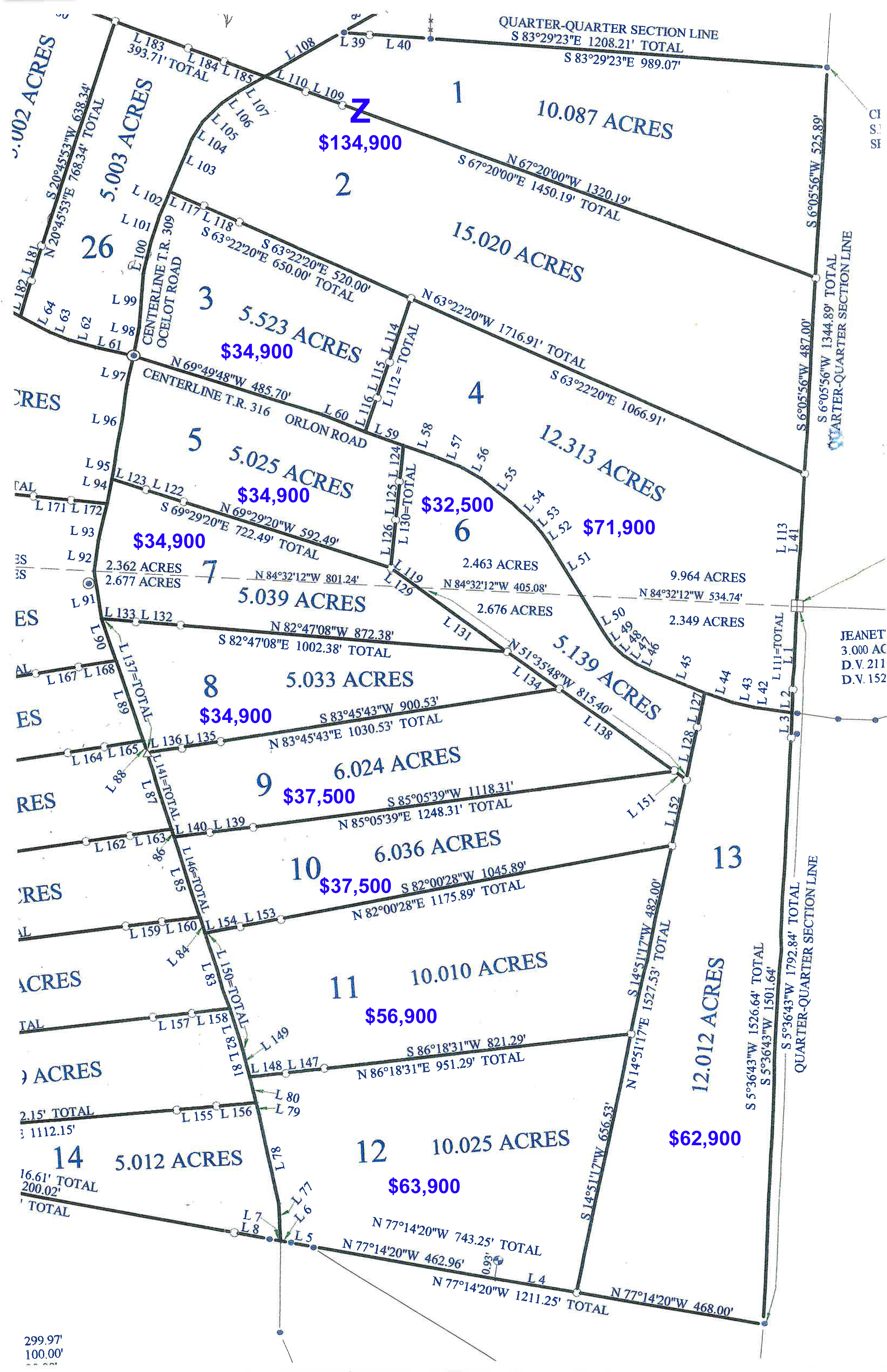 Property starts on the left side of Ocelot Rd