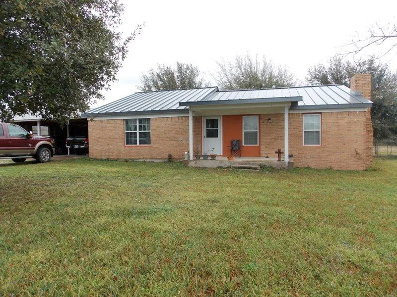 Grass covered 10 acres for your livestock, with nice metal barn/shop. 3 separate pastures, lots of Hwy. 77 frontage and lovely 3/2 brick home.
