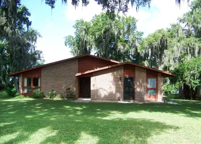 Priced reduced $30,000! Beautiful 10 acres on the St. Johns River with approx. 2 acres in mature navel orange grove and 7 acres in pines. Custom built brick home has over 2600 under roof. Over 3000' of storage space under roof with large pole barn for extra storage. Below August 2010 appraisal, make an appointment to see this unique property. Motivated seller!