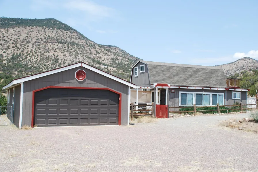 What a great deal for a young couple with children, equestrians, retirees! PRICE REDUCED DRASTICALLY! This two-story cabin has a lot built into its 936 square feet. It is very well built and has been maintained in mint condition. It has everything in small but comfortable sizes. The entry den is spaceous and has great views across the Plains of San Agustin and towards the Magdalena Mountains through an array of large windows. Then enter an additional living area, a dining nook, really nice country kitchen, and the sunken master-bedroom. The bathroom on the main floor has a shower and no tub. Up the stairs are another large bedroom with fenced balcony and awesome views, a guest bedroom, a bath with tub, and a storage area in the hall. Floors are carpet, vinyl and ceramic tile. This home is on septic and its own excellent well. Beside the home across the yard is a detached two-car garage and next to it a small metal shed to store your garden tools. There is plenty of space to roam, and your dogs have their own huge fenced-in backyard. If you like to ride horseback, public lands are less than a mile up the canyon. HOA allows to fence in the property, which the present owner has not done. Access to this property is on well maintained gravel road for less than a mile off of New Mexico Highway 12.